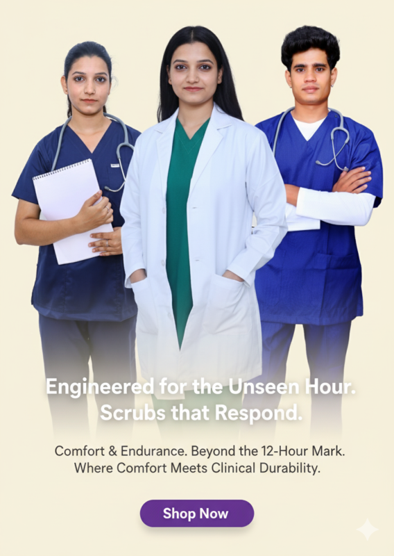 India's first cold-weather medical scrub set built for the realities of your shift. Premium polyester-viscose blend with strategic fleece reinforcement in key areas—shoulders and back—where you need warmth most. Stretch panels across the torso and back allow unrestricted movement during procedures. Expanded pocket system keeps your essentials organized and accessible. Designed to work harder than you do, so you can focus on what matters—your patients.